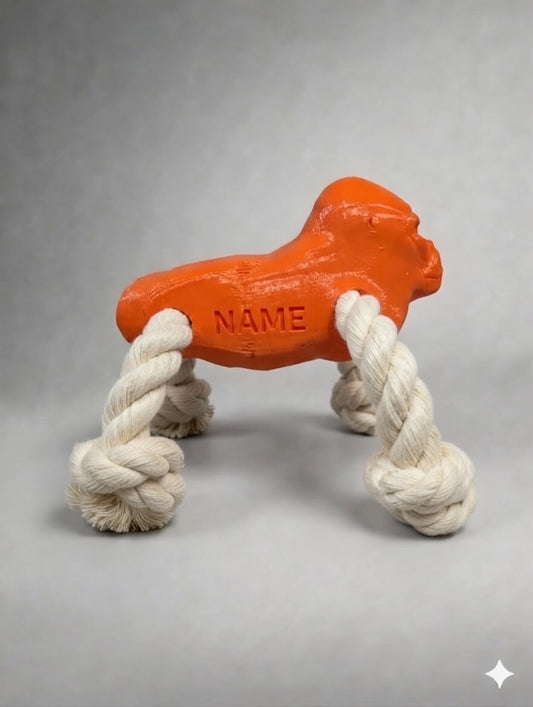 Fully personalised — your dog’s name embossed, their favourite colour, and size matched to their breed and play style.